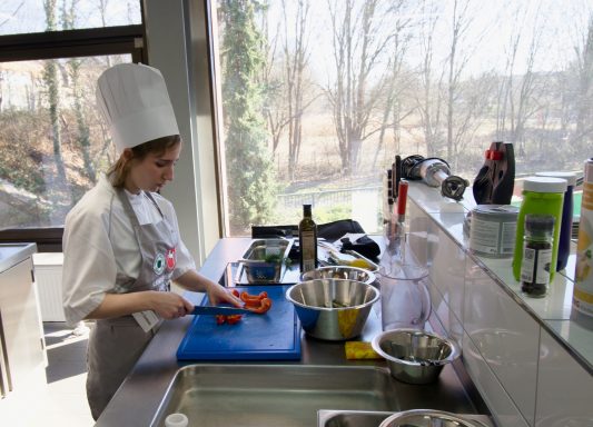 Nach einer intensiven theoretischen Schulung starteten die Teilnehmenden unmittelbar in die praktische Prüfung. In der modernen Lehrküche der Trainings-Akademie bereiteten sie Hauptgerichte zu – bewertet wurde jedoch nicht das Ergebnis auf dem Teller, sondern die konsequente Einhaltung aller Hygienestandards während der gesamten Produktion.
